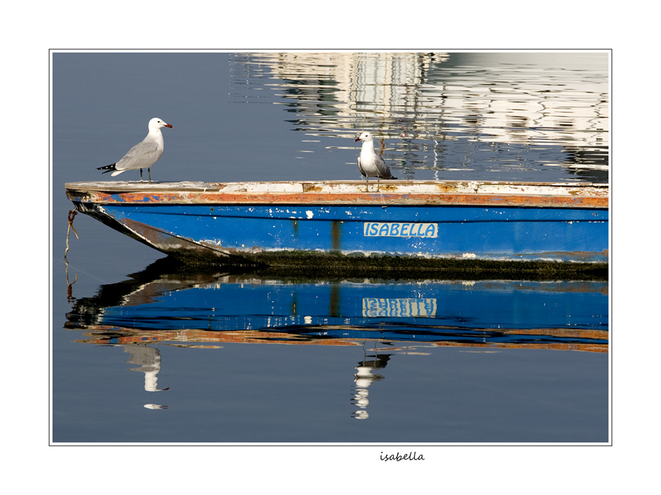 Molto bella questa barca immersa nei riflessi, con i suoi impassibili passeggeri ed i suoi colori belli saturi.