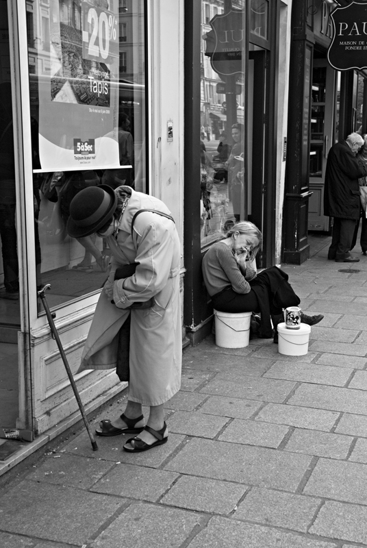 Mi piace molto la posizione speculare dell'anziana e della questuante.