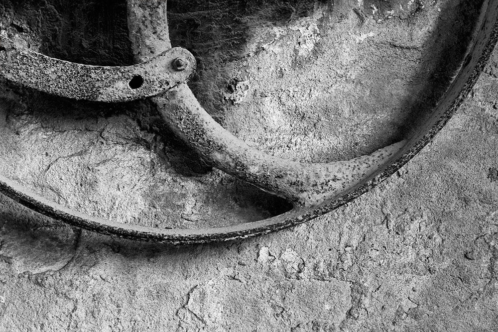 E' il quarto inferiore di una ruota di azionamento di una pompa manuale, erano usualmente poste all'ingresso delle stalle quelle. Nel girare la ruota attuavi la pompa che cavava l'acqua dal pozzo e riempiva il vascone dove un tempo si abbeveravano i bovini.