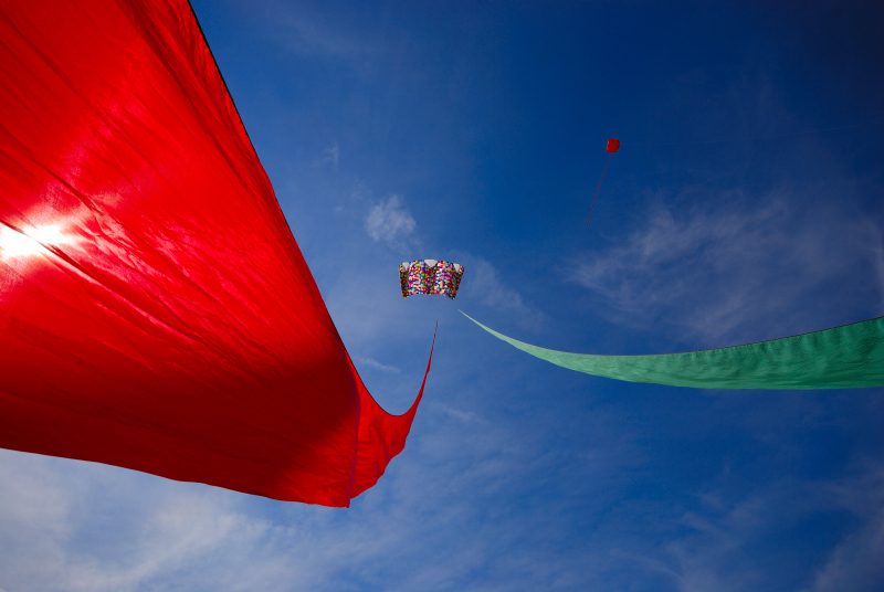Il senso del volare in alto, in alto. la leggerezza della sospensione, la freschezza dell'etere e la brillantezza della luce sono piuttosto ben rappresentati in questa immagine degli aquiloni che esce con piacevolezza dagli schemi abituali.