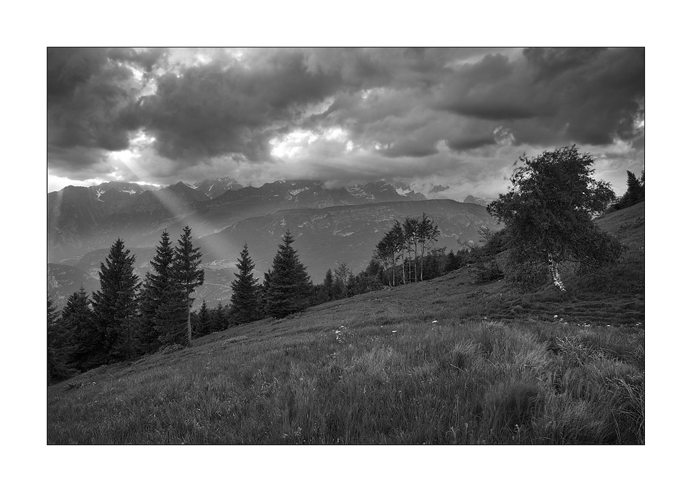 Bello lo scorcio di paesaggio, e chiaramente anche il raggio di sole che filtra dalle nuvole è molto azzeccato e ben ritratto, mi sembrano invece un po troppo impastati i grigi, manca forse di un po di contrasto, in ogni caso immagine piacevolissima.