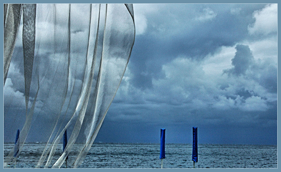 splendida Rosy....splendida ....una dolcezza e leggerezza incredibile....dovuta a questo bel velo spostato dal vento e da questi colori blu azzurro....e poi nella lontananza le nubi...nubi minacciose, ma che il vento presto portera via ed il mare ritroverà la propria calma Smile