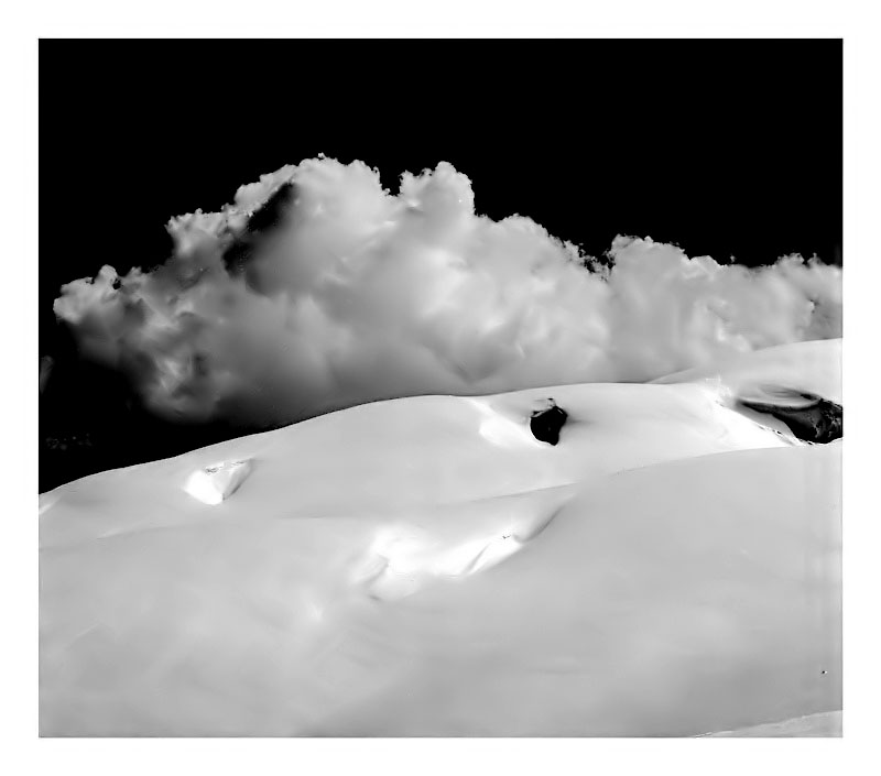 Bellissima la compo con quel nuvolone che sembra uscire dalla neve, ma sopratutto un bn spettacolare
