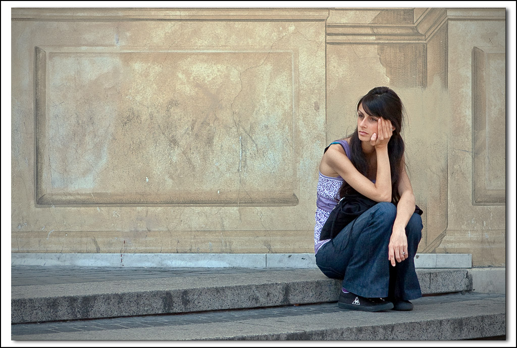 Mi piace come hai usato il retro architettonico quasi come un fondale per ambientare il ritratto. Una bella foto di strada. Ciao Tiziano  |