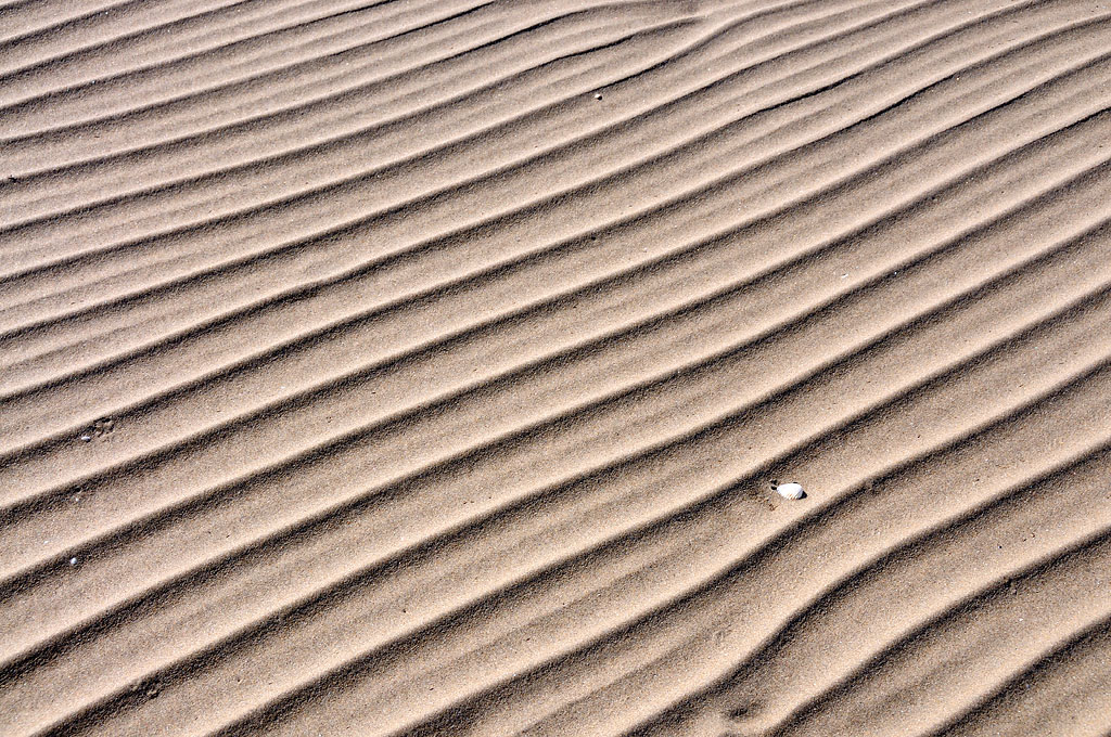 bella la luce che dona volume a queste piccole onde di sabbia, ben posizionato il sassolino bianco che diventa l'unico soggetto immarso a questa texture di linee.