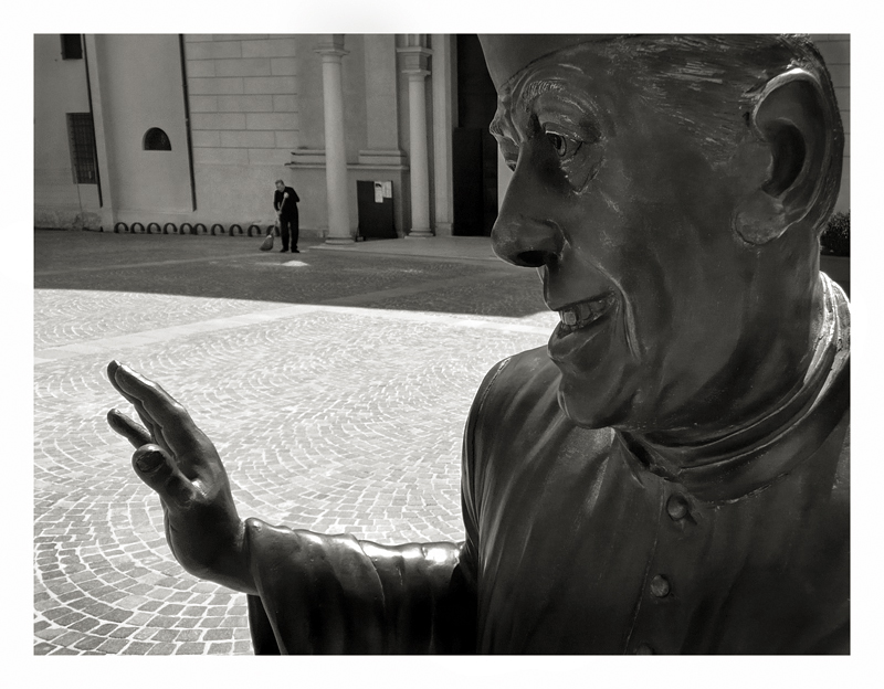 La vignettatura dei sanpietrini in basso a sinistra inoltre è funzionale al BN, ma forse dopo che ci si accorge del "trucco" diventa un po' innaturale vista l'illuminazione molto forte del resto della piazza.