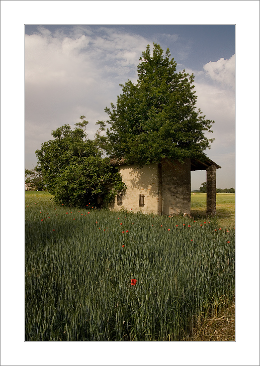 ...sembra che la chioma alberata faccia da cappello alla bella casupola, quasi a mò di protezione...