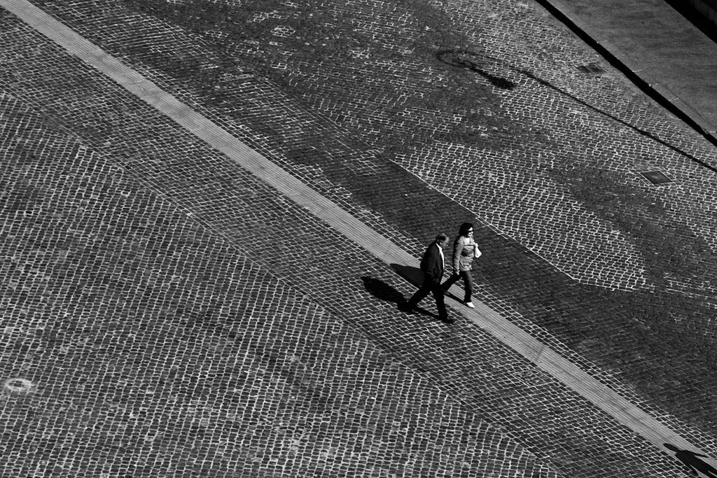 A me, piace molto e la diagonale, unico elemento ordinato nel caos del selciato sostiene perfettamente tutta la costruzione