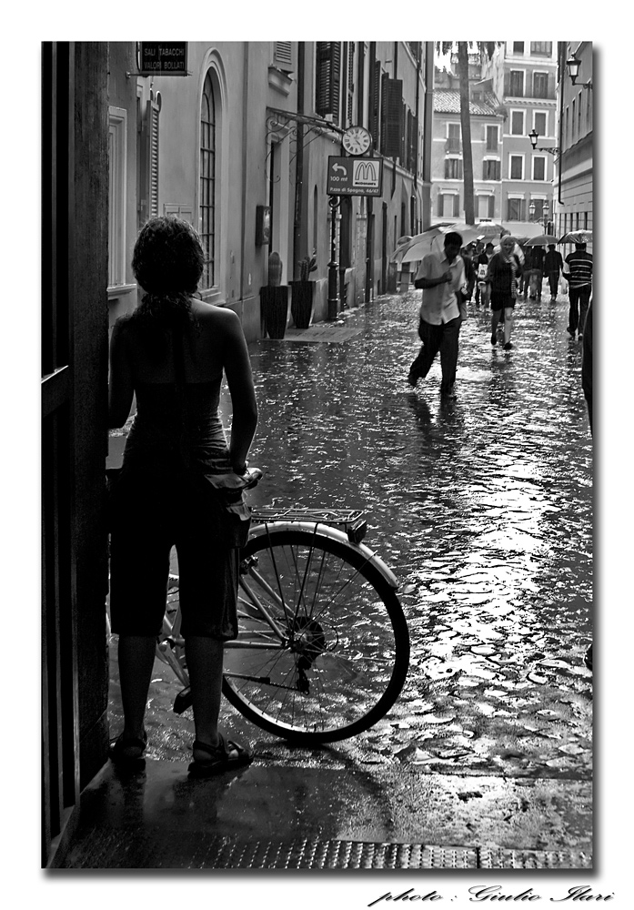 | La scena da acquazzone improvviso estivo è colta con una certa perentorietà. ma non mi piace quel pezzetto di corpo che spunta sul margine destro facilmente eliminabile con un taglio in post. Ciao Tiziano