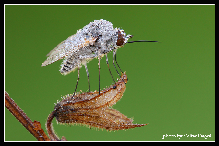 Veramente molto bella bella, ottimo lo sfondo che mette in risalto questo insetto infreddolito pieno di rugiada perfettamente a fuoco Ok! Ok!
