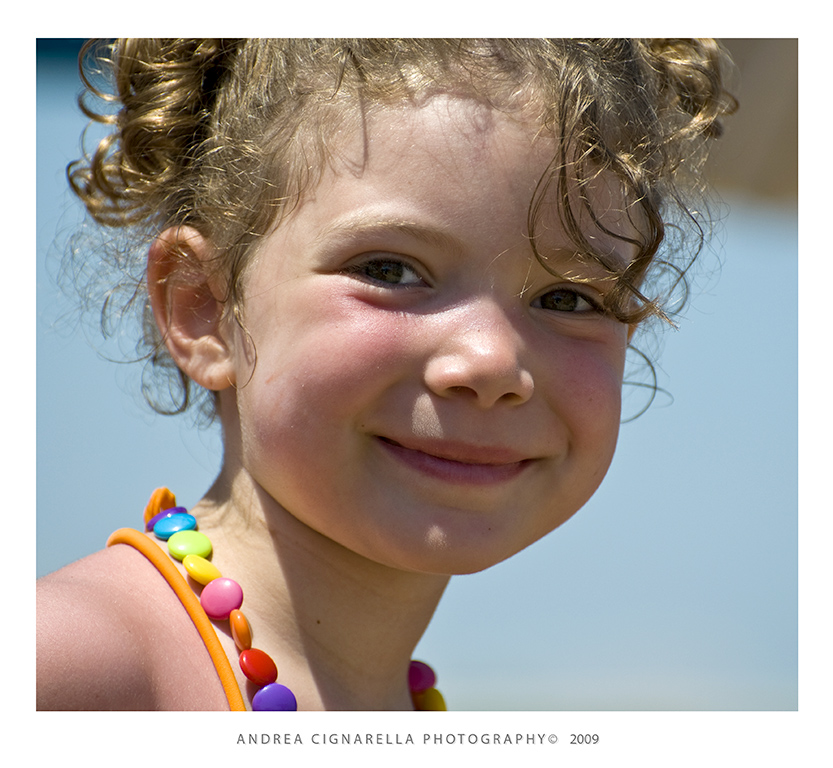 Lei è deliziosa, è bello il tocco di colore della collana, e l'espressione è davvero piacevole. Disturba solo la luce forte del sole che produce ombre durissime _________________ http://www.flickr.com/photos/morganamor |