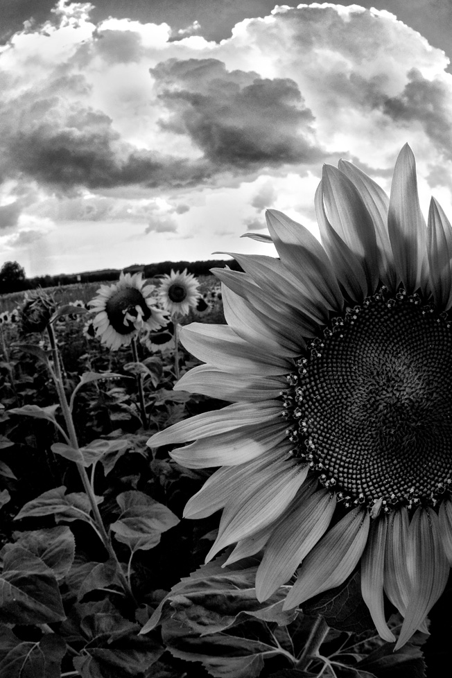 Piace anche a me, mi lascia però un pochino perplesso lo stacco tra il girasole coi semi e petali molto nitidi e le nuvole molto meno nitide, questione di gusti probabilmente.