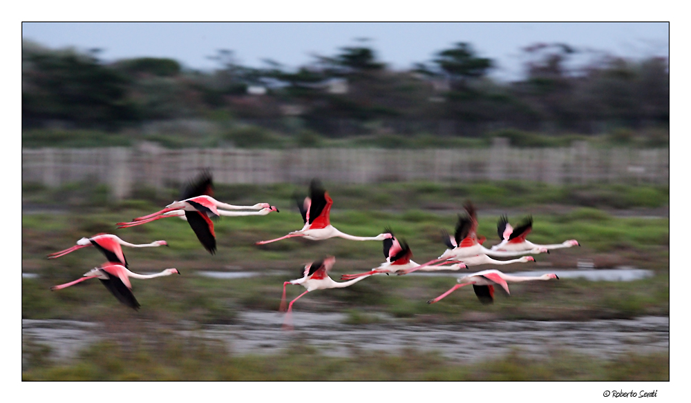 per trasmettere la sensazione di "movimento" che si crea quando nello stagno i fenicotteri decidono di partire .... Smile