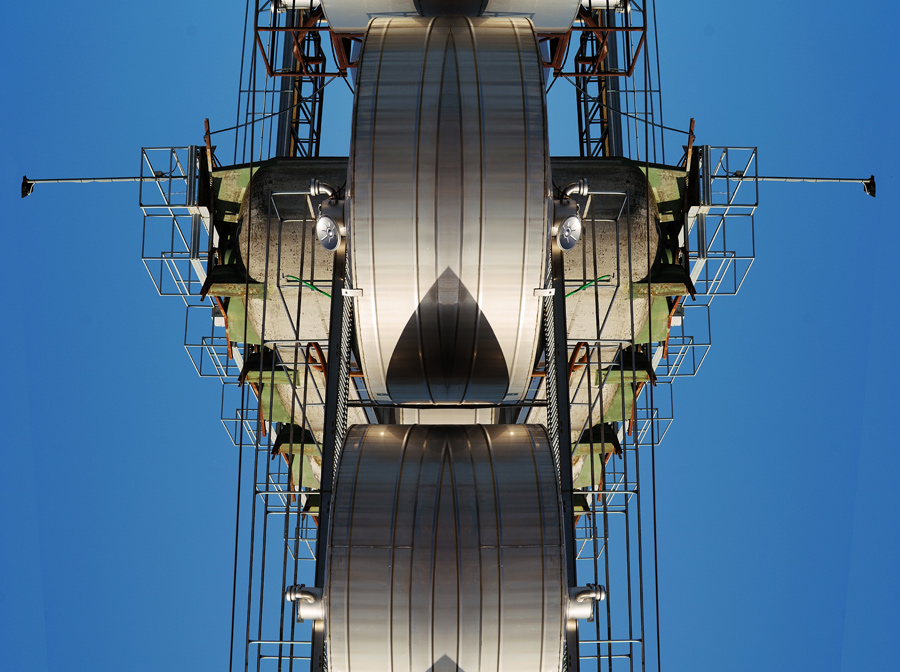 Dal punto di vista della costruzione stessa, mi dispiace un po' il taglio brusco nella parte alta, è come se tu avessi voluto escludere parte della resa metallica della struttura stessa.. avrei cercato di far chiudere in alto sfruttando il blu del cielo..