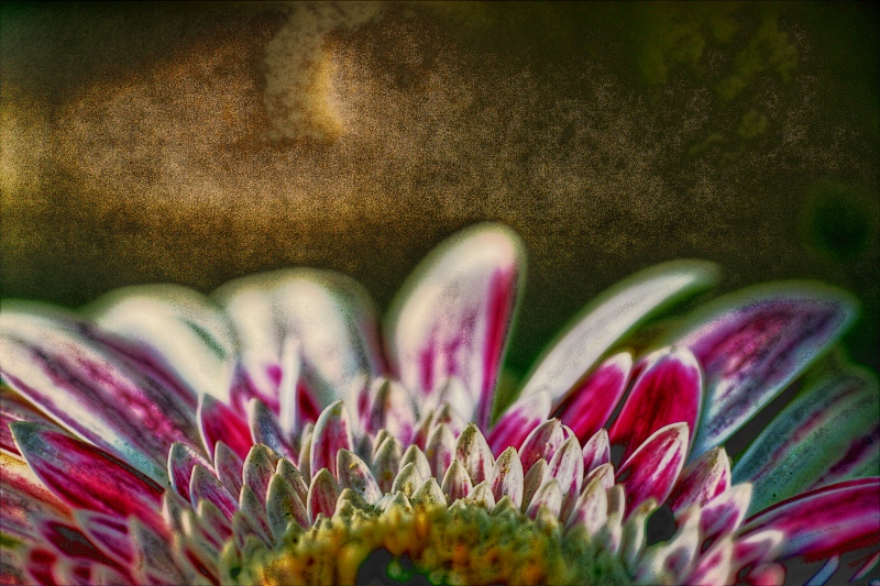molto ben fatto a mio parere l'effetto rovinato/ sporco/ solarizzato dello sfondo e del fiore.