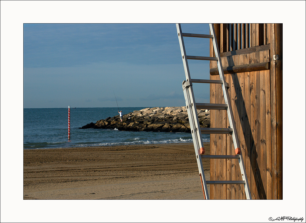La mia intenzione in realta' era un'altra.... volevo intitolare la foto | \ \ ma poi pensandoci bene mi sembrava una stupidaggine....il mio gioco, il mio scopo era quello di scattare quando la canna da pesca fosse stata piu' parellela possibile alla scala in modo da contrastare maggiormente la "verticalita'" del palo in acqua..... mi sa che non ci sono riuscito....ma era soltanto un gioco....