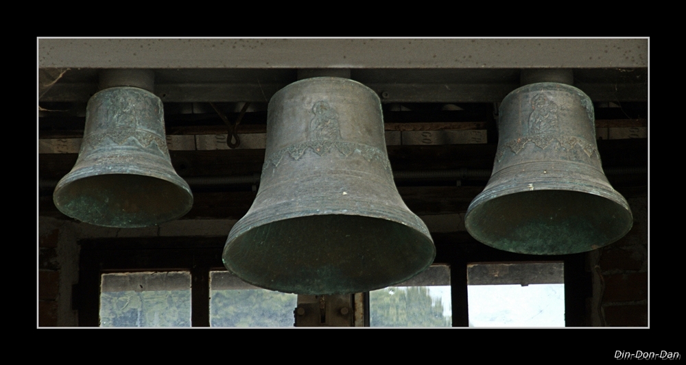| Non l'avrei tagliata...a differenza del cinema e della televisione, la fotografia non è costretta a un formato standard come lo schermo cinematografico, ma può scegliere fra lo scatto verticale e quello orizzontale, magari poi in fase di stampa o di post-produzione digitale, si possono effettuare tagli come questo, ma va a perdere la forza del suo contenuto...qui si vedono tre campane di tre misure diverse, punto. Includerla nel suo contesto originale, ambientarla, con tutti i disturbi visivi di cui è contornata, riusciva a ad avere più rilevanza..secondo me.
