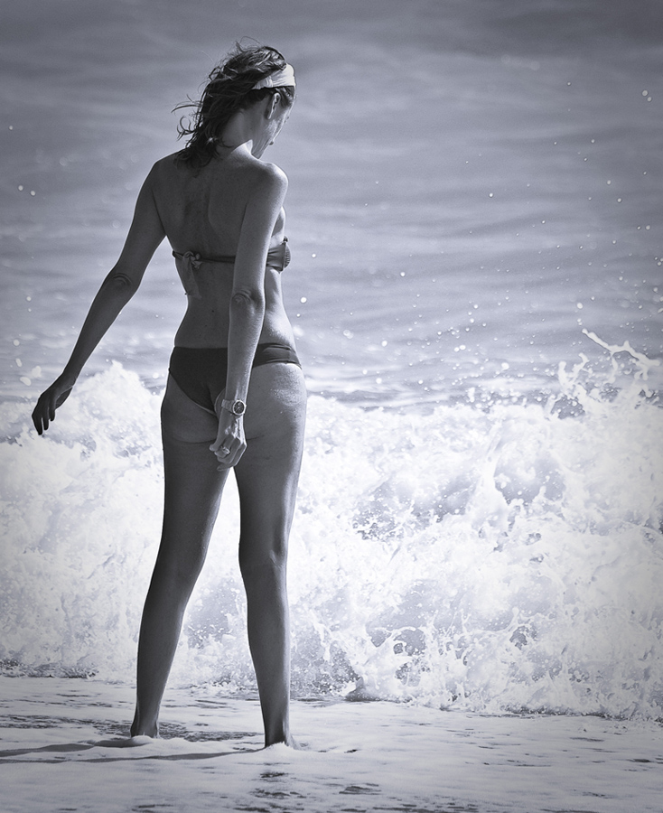 ciao! mi piace molto la composizione, ed anche il b/n non è male, da un tono di foto vecchia, forse l'unica cosa (a mio modesto ed insignificante parere) è la posizione delle braccia del soggetto, che: è vero che sta un pò arrettrando dall'acqua (probabilmente fredda), ma cosi mi sembra un pò poco naturale, forse è una para mia..tutto qui! magari facessi delle foto cosi!