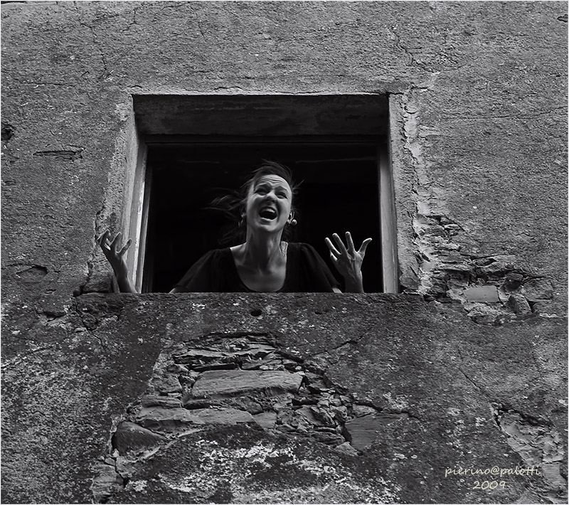 ci avessi fatto credere che è la foto di una ragazza arrabbiata, che ne so, con dei bambini particolarmente rumorosi in strada (o per mille altri motivi possibili), sarebbe stata molto più suggestiva...