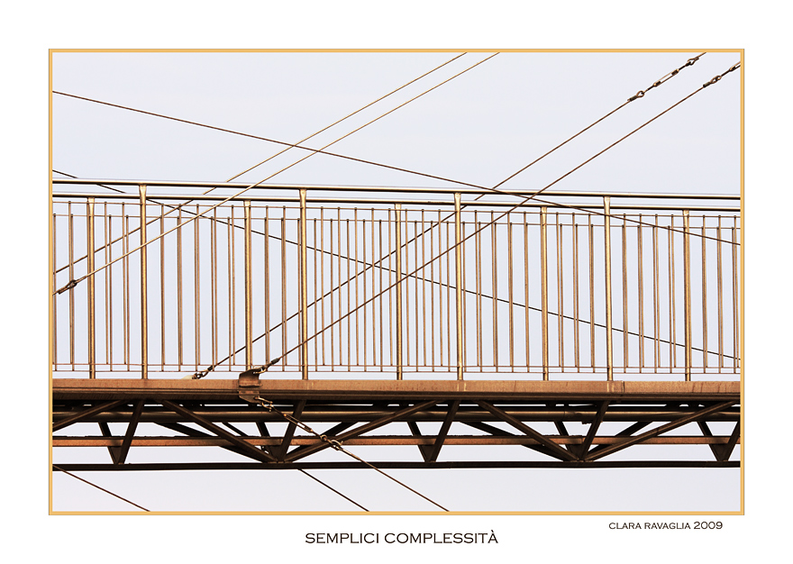 Ogni tirante corre da parte a parte dell'immagine, passando sotto o sovrapponendosi al metallo color oro; la brillantezza che hai donato allo scatto è senza dubbio preziosa.
