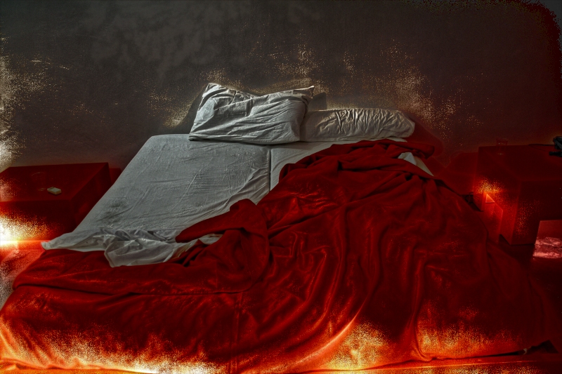 ma avrei dovuto fare un'elaborazione leggermente diversa, qui si sono persi i due bicchieri usati di plastica, uno per comodino ed il pacchetto di fazzolettini di carta su quello a sinistra...