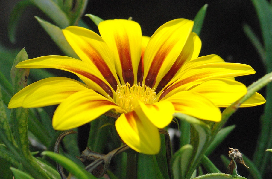 Anche il fiore seppure bello, non è un soggetto facile. Questa erba con fiori bellissimi non ti permette di creare sfondi interessanti ed un minimo sfocati. La pianta in questione è piena di steli. Per cui non ti rimane che giocare con pdc e compo molto più ristrette elaborando scatti sul dettaglio di una parte del fiore.