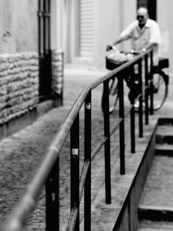 ottima la composizione dell'immagine, appropriata la scelta del bianco e nero, non condivido molto il fuoco così selettivo... mi ricorda una famosa immagine di bresson  |
