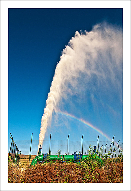 Splendido l'arcobaleno che sembra essere un puntello per reggere la colonna d'acqua!