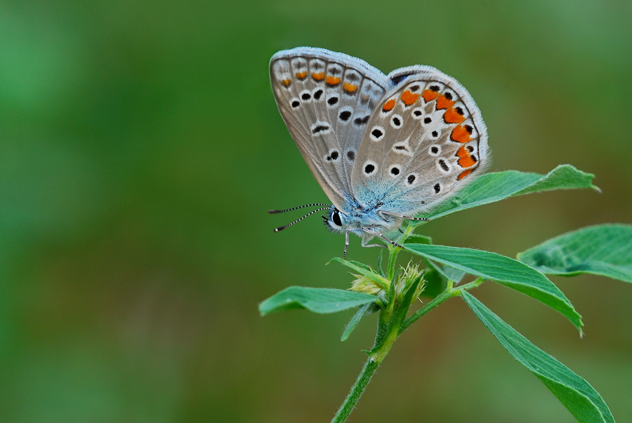 Immagine ben realizzata per la resa dei colori e il gradevolissimo sfondo. Discreta la maf sulla licenide. Forse avrei evitato il taglio delle foglie.