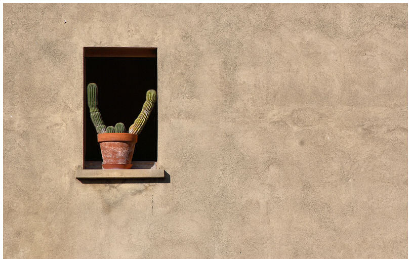 Mi ha colpito la stranezza della pianta, nata così in natura o voluta dalla mano dell'uomo, e il muro intorno completamente senza finestre e mi è sembrato un grafismo ineressante. |