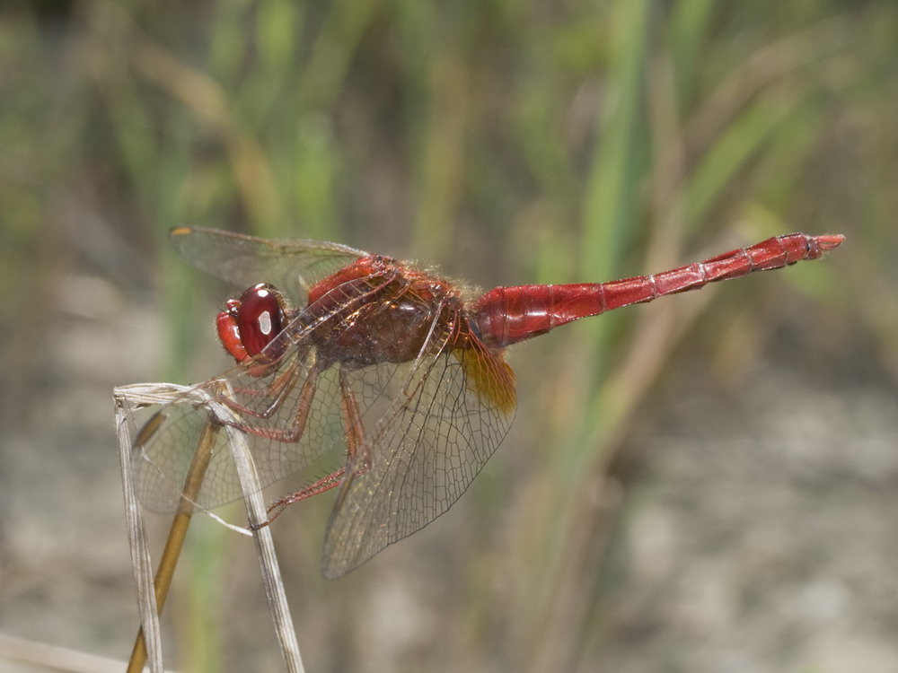 Beh domanda a parte, una bel maschio di Crocothemis erythraea è finito nel tuo mirino... luce un pò duretta e immagine un pelo velata... forse manca un pò di contrasto... lo sfondo non è dei migliori... Wink