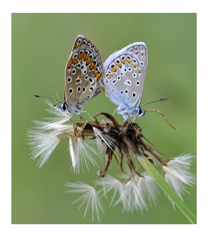 In questa situazione è ben difficile avere a fuoco entrambe le licenidi non essendo sullo stesso piano. Infatti la parte estrema delle ali della farfalla di dx è un pò morbida.