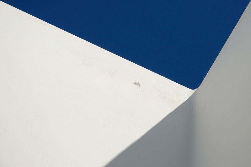Importante la presenza della zona d'ombra che oltre a rappresentare uno scarto cromatico rispetto al bianco del lato sinistro da profondità all'immagine e consistenza fisica al tutto. Anche la macchiolina di intonaco scrostato interviene perentoriamente nel dare matericitò ad una immagine se no fin troppo stilizzata. Per me buona la resa anche della saturazione del cielo, non troppo marcata.