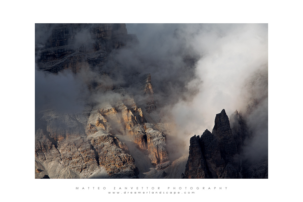 Sarebbe piaciuta a Dino Buzzati, ne sono sicurissima. Per quanto mi riguarda, ho voglia di mettere su la cavalcata delle valchirie di Wagner.. e di rimirarmela in tranquillità, mentre osservo il lento trascorrere di questi vapori grigi che giocano a rimpiattino con il sole accarezzando le pareti, quasi a voler placare gli spiriti delle vette.