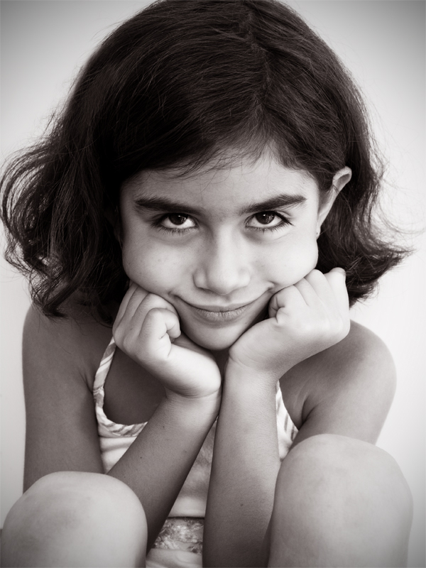 il bianco e nero (che a me appare bianco e mogano quasi....ma sicuramente è il mio pc ad avere problemi) mi piace molto e risalta gli occhioni della bimba