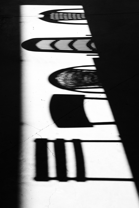 No, qui di preparato non c'è niente. Ero in vacanza, ascoltavo un po' di musica seduto su una comoda poltrona. Davanti a me ho focalizzato questo gioco di ombre dato da un tavolo adibito alla cena della sera dai proprietari del residence che mi ospitava. A destra è il tavolo che delimita l'ombra delle sedie, a sinistra l'ombra della tettotia che arrivava fin lì. E in mezzo la luce che filtrava e scriveva l'obra delle sedie in trasparenza. Subito ho notato anch'io la curiosità delle cinque sedie una diversa dall'altra, tre in plastica e due in legno di vario tipo. A volte il caso e le combinazioni maturano buoni scatti. Ciao Tiziano  |