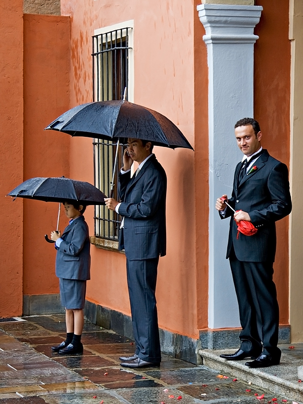 I due orientali con l’ombrello, rappresentano la parte funzionale dello scatto, realizzando un contrasto compositivo di tipo contenutistico con il nostro simpatico personaggio occidentale. Culture diverse, atteggiamenti diversi e sguardi diversi. L’eleganza formale è invece il comune denominatore dei tre personaggi come del resto è anche la composizione di questo fotogramma. Ma questo lo sapevamo già dalla galleria del nostro kinderman….