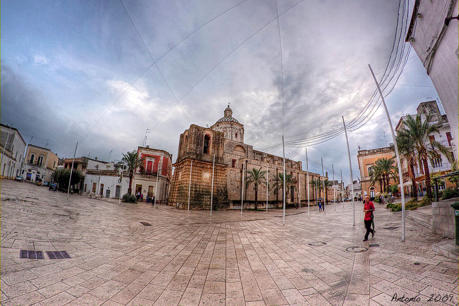 Immagine suggestiva grazie alla valorizzazione degli spazi della piazza e del cielo data dall'ampiezza dell'inquadratura.