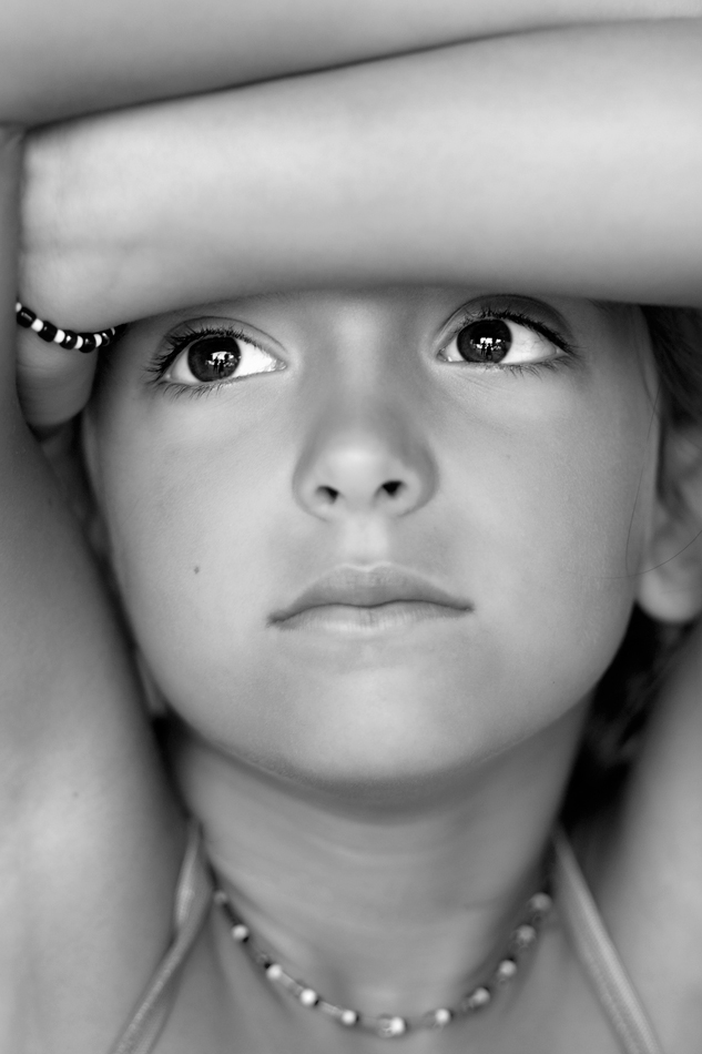 Bellissimo ritratto. Magnifica luce degli occhi e non guasta la leggera sfocatura. Il braccialetto al polso distrae un po' ma non disturba.