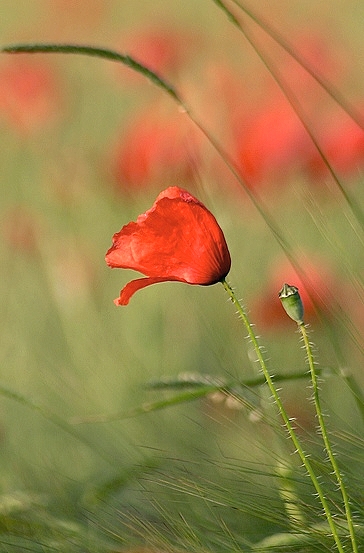 Molto delicata come composizione che ci fa vivere e percepire la precarietà e l'esilità di un papavero al vento. Colori molto naturali con uno sfuocato che diviene forse il vero protagonista ambientale della foto stessa.