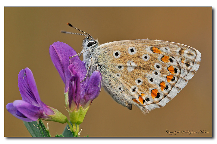 Composizione molto curata nella distribuzione degli spazi posizionando la licenide in un punto nodale.