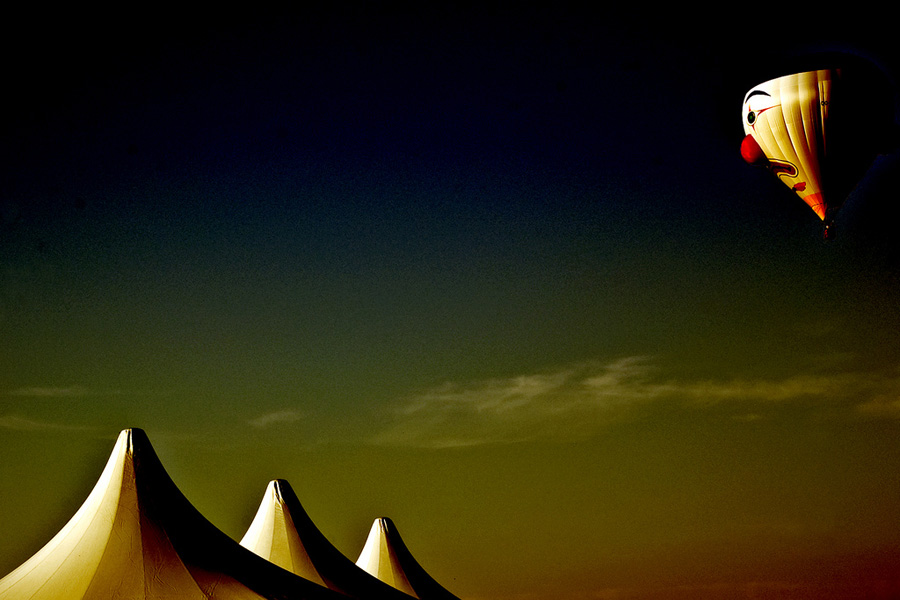 così ho regolato la luce scurendo appena , ho scelto un colore arancio ambrato (preso con il contagocce da un punto della mongolfiera e ho fatto colore brucia ( o brucia lineare... non ricordo) con photoshop; a quel punto ho dovuto schiarire appena l'immagine ottenuta, l'ho stampata e inviata al concorso legato alla manifestazione.... mahh??!