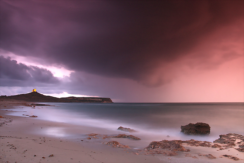 spettacolare immagine con un pp di eccellente nitidezza e luminosità. il gigantesco nuvolone conferisce note di drammaticità al paesaggio marino. noto del rumore nel cielo.