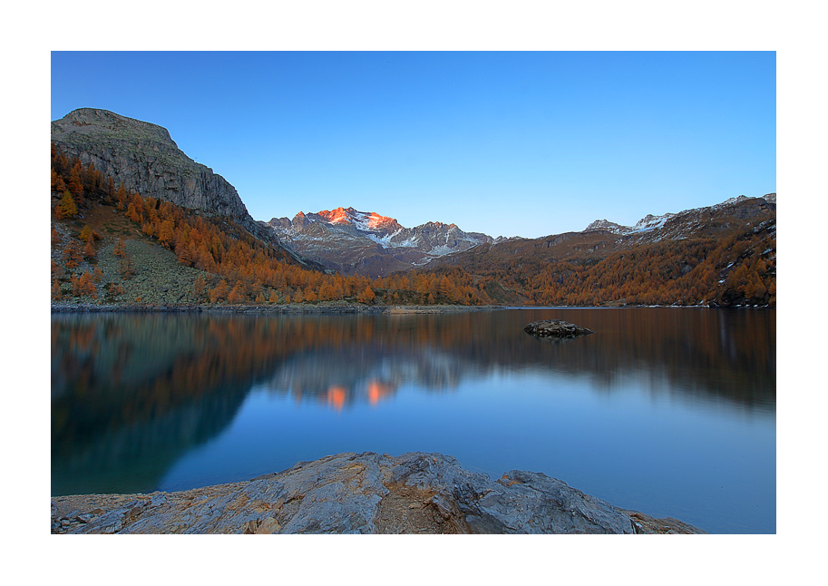 Meravigliose tonalità esaltate da quei punti di luce rosata sulle cime.