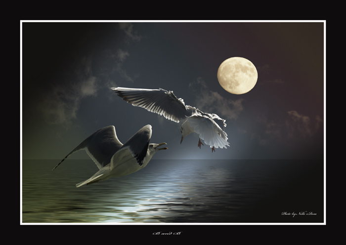 bella la costruzione dell'imagine bella la posa dei gabbiani e la luce che filtra dietro.