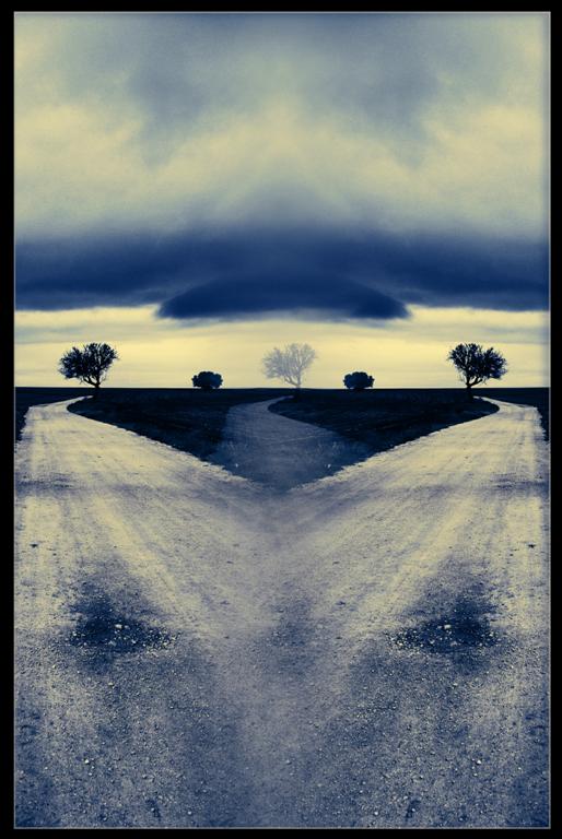 Così come si poteva cercare di rendere perfettamente rettilinea la strada centrale, diretta verso l'albero presente.. per dare una doppia strada contrapposta, curvilinea, e una diretta, magari più retta..