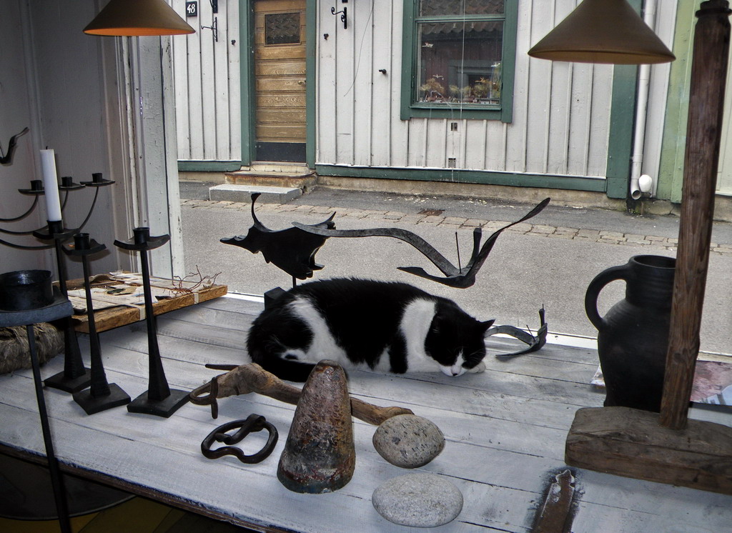 L'inquadratura appare disordinata in modo inevitabile,la scena era questa, si passa a fare l'elenco di tutti gl'attrezzi che sono presenti per cercare un collegamento con il gatto, è questo il punto debole i troppi elementi, sia in primo piano che nello sfondo, che creano un po' di confusione riducendo la forza del protagonista principale.