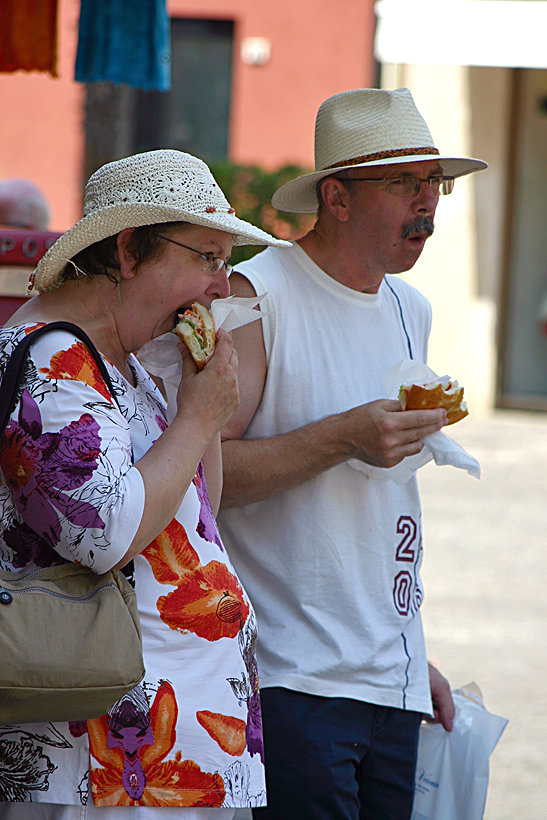 Una simpatica foto ad una coppia "ben assortita" tra l'espressione dell'uomo non proprio sveglia, e quella della donna che forse farebbe bene a non mangiare e a mettersi a dieta non saprei quale scegliere, come sempre bravo nel cogliere l'attimo.