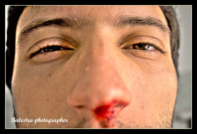 Salve pipposauro, trovo il tuo lavoro molto realstico danando agli occhi un giusto grado di profondità e nitidezza...ma trovo tutto troppo spostata sulla sinistra!!!L'effetto del sangue dal naso è voluto??