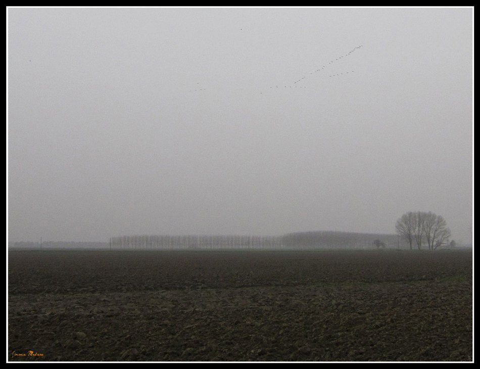 Gradevole... non male lo stormo di uccelli così lontani da formare poco più che un tratteggio nel cielo...